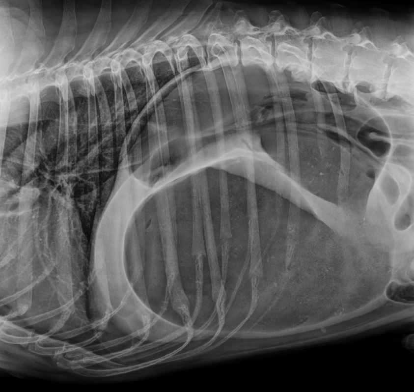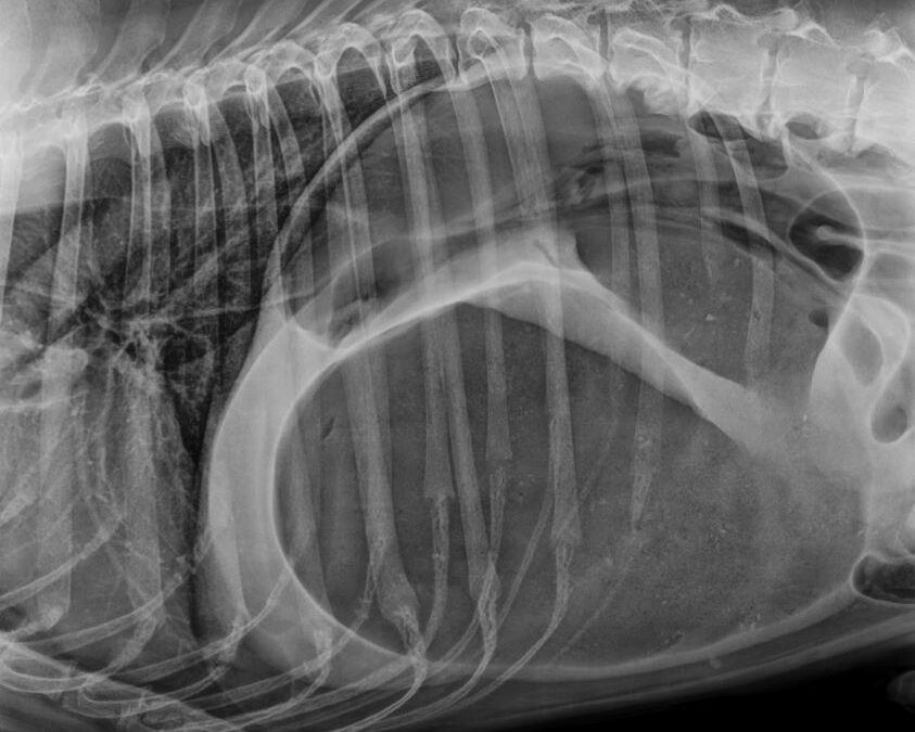 An xray of a dog’s stomach with GDV